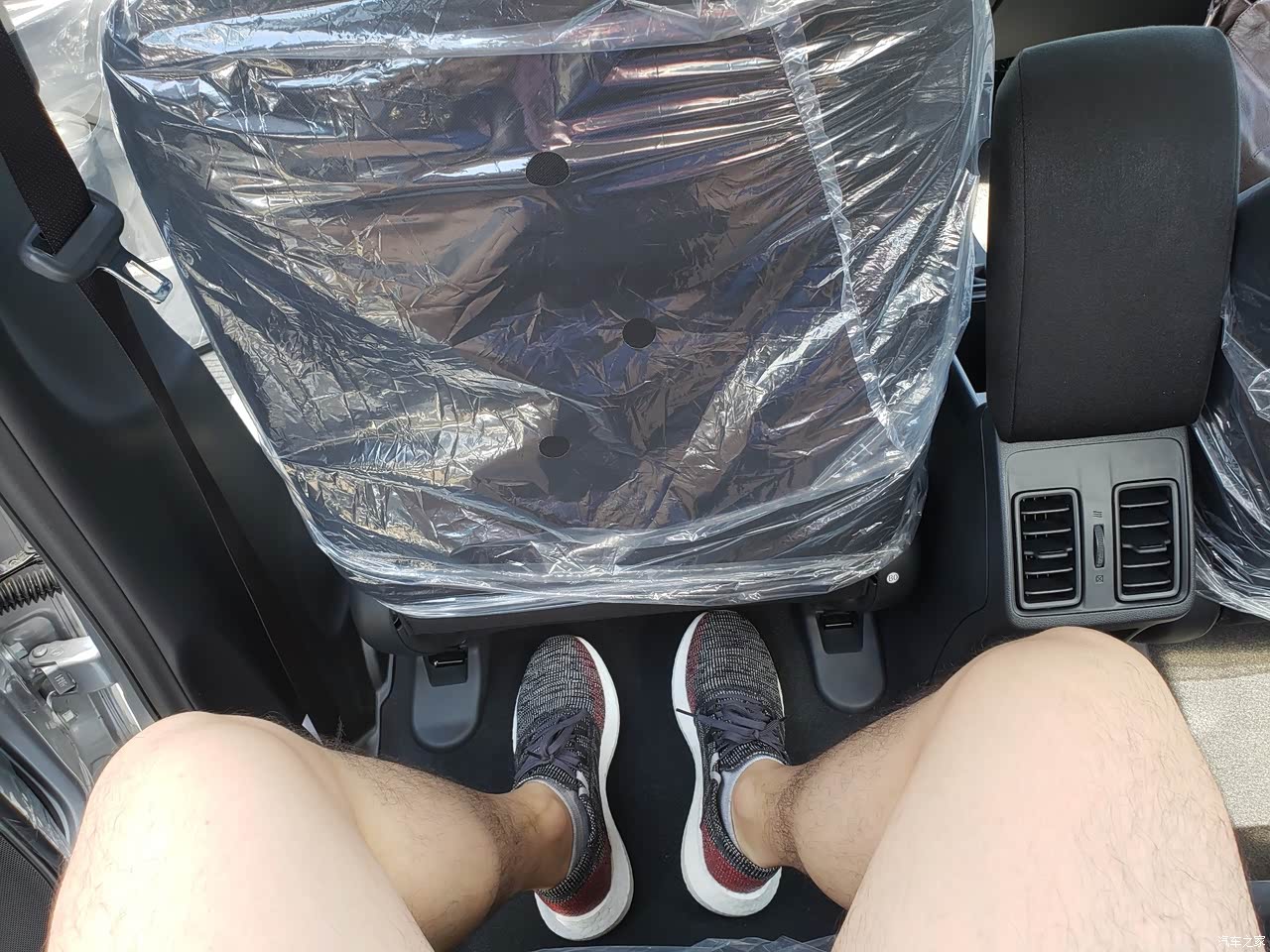 空间没问题哈。 比桑塔纳捷达之流好一小截,主要是偷空间,脚踩的地台内凹。 前排座椅靠背的下部内凹。 如此“偷”法 还是效果显著。
