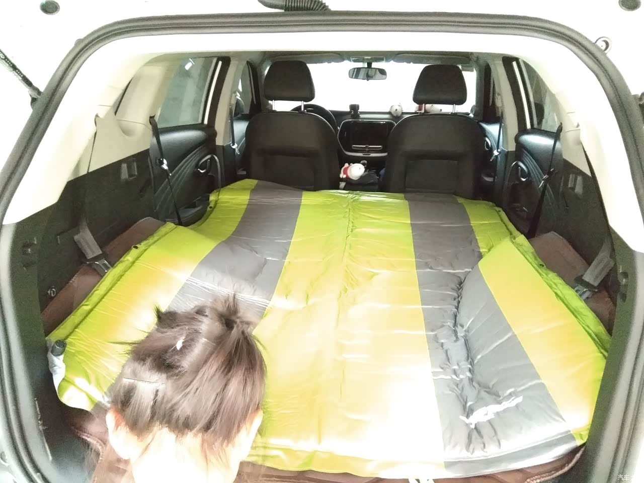 储物空间很丰富!我买这个车还有一个很主要的用途!是去单位解决午休的!后排放倒就是大床呀!