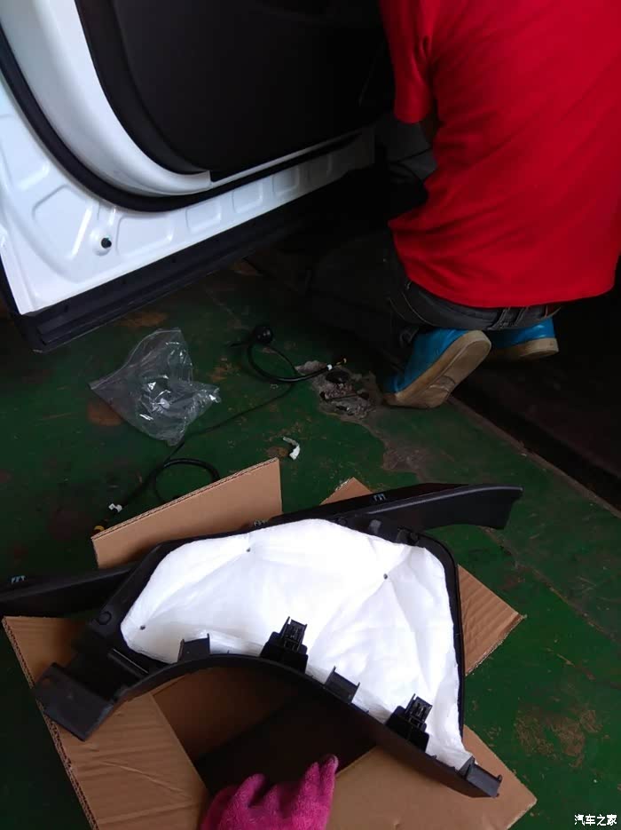 这是地板下面更厚的隔音棉!这是我安装电动踏板时候拍的!小师傅在地板下布线!