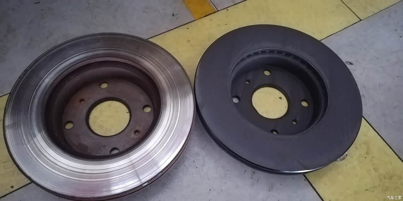 左边是旧的刹车盘,右边是全新刹车盘,大家可以对比下