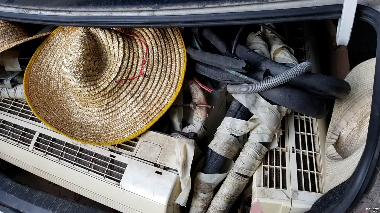 车座位是真皮很舒服,我试过运4台空调外挂机/室内机都没事