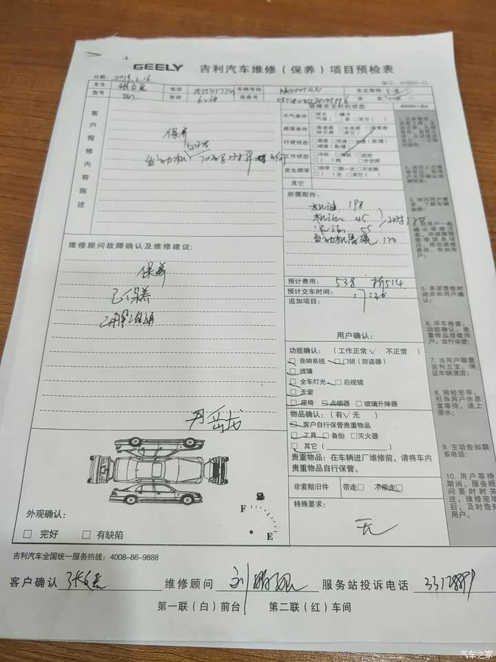 首保免费的,没有注意去看,二保自费,自己全程在旁边看着,保养的项目有清洗发动机,换机油,换机滤,空滤,