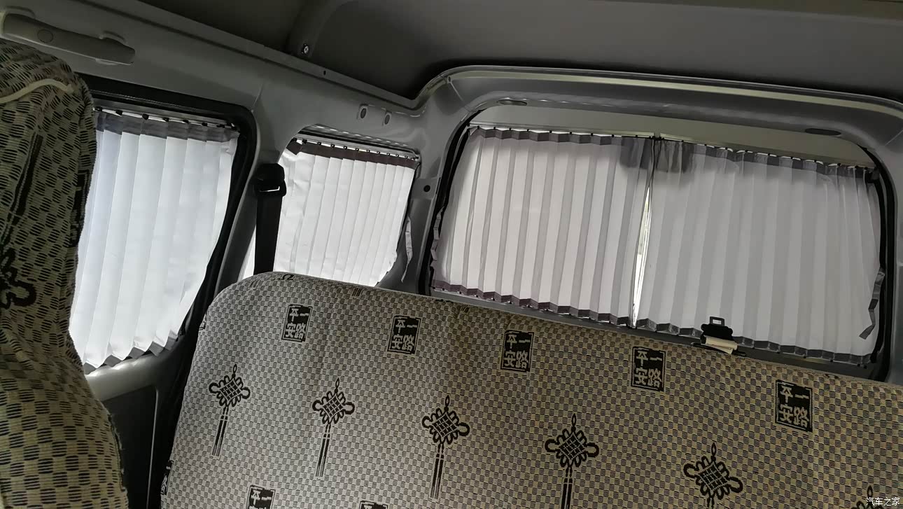 没烟灰缸,只能弹窗外,一弹烟灰到处飘,就一个放茶杯的地方,辛亏家里就我一个人喝茶,面包车不许贴膜这就是一种歧视,没办法只能网上买个窗帘了