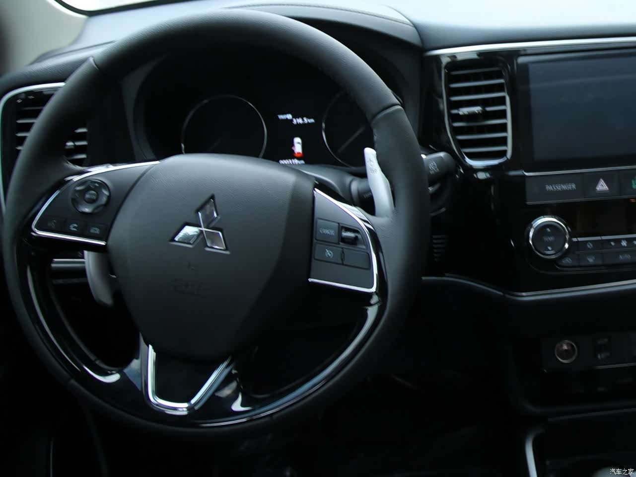 外观是我和媳妇都喜欢的风格,两条横着的闪光条和三菱车标相结合,两边是刀型的大闪亮条;造型有点霸气,修车的车身设计又显的稳重。