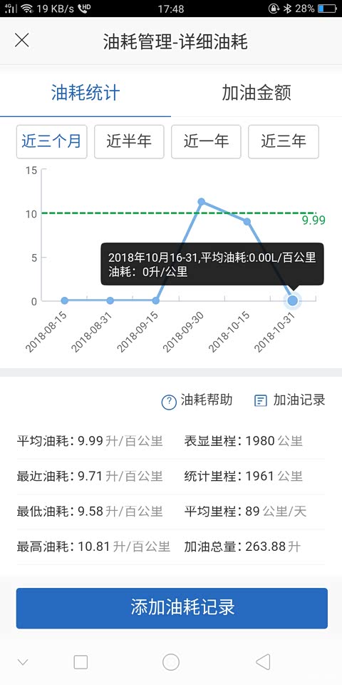 这是汽车之家的油耗记录