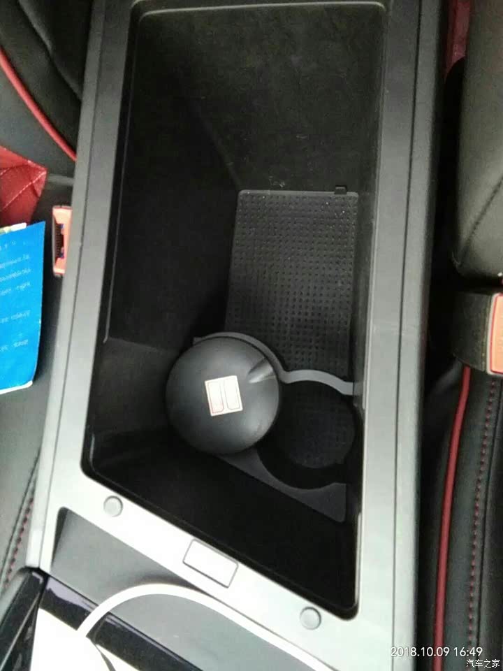 扶手箱,里面带杯架,能放不少东西呢。
