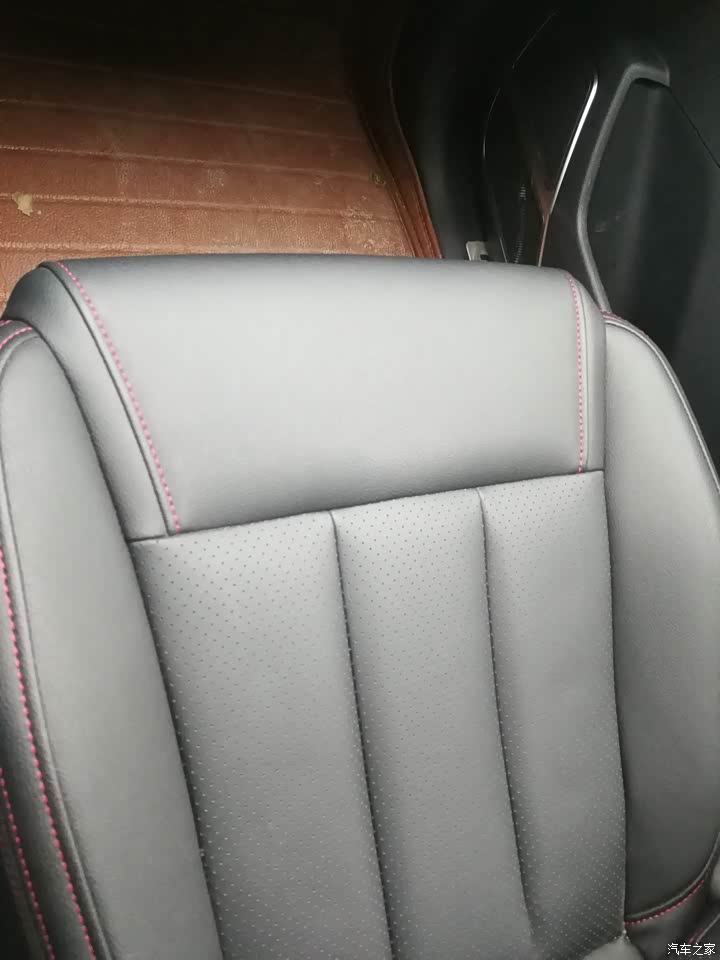 真皮座椅。黑红设计,不过总感觉差了点什么,等我从万能的淘宝上购买的东西回来了就好了
