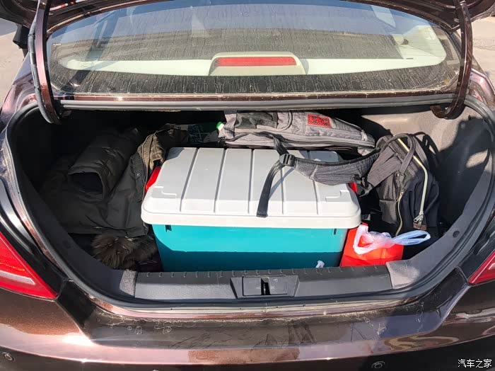 后备箱里放了一个双人帐篷,一个防潮垫,一个羽绒服,一个大号的整理箱,2个书包还有很大空间。