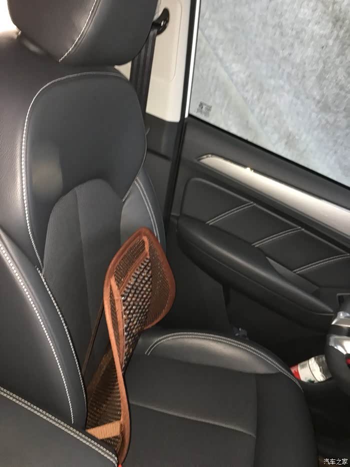 内饰方面全车都是皮质的座椅,乘坐起来很舒服,而且很好打理,不怕脏,中控台上和门板上都是软皮,档次感还是有的,塑料也是软塑料,舒适性不错