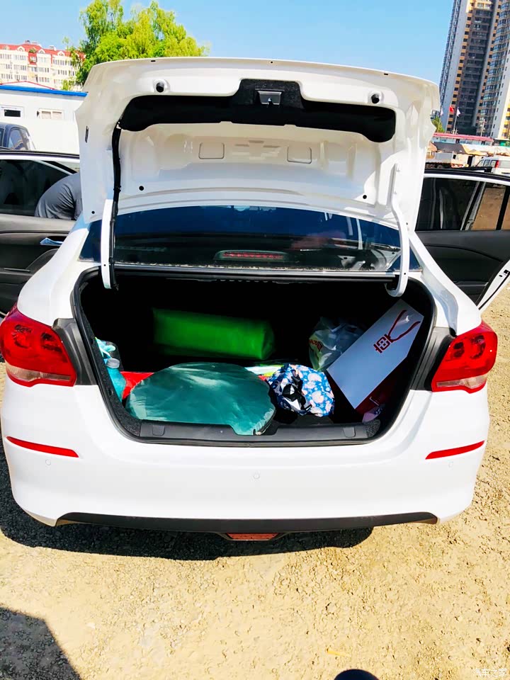 后备箱真的超级大,完全超过了我的想象。我出去游玩的时候,放了两个22寸的行李箱,很多水,和食物,还有帐篷、游泳圈、衣服、建议餐具等等一整套,都完全放得下。