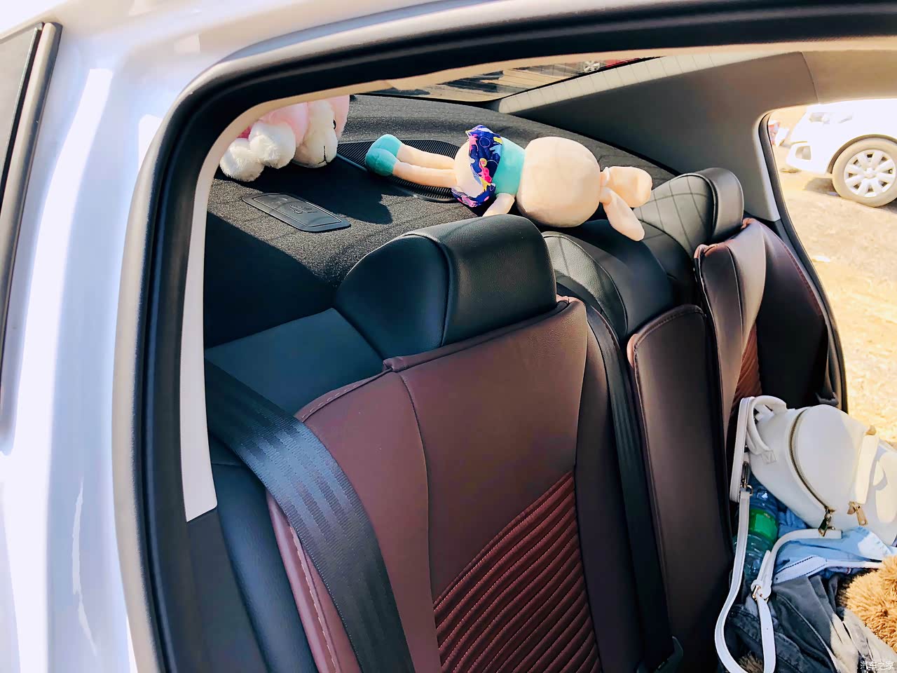 我们都是身材中等,坐在里边是很宽敞的。就算坐进去四个大男人,依旧不会显得很拥挤。但是后座只能坐上去两个人,3个人的话就很拥挤了。