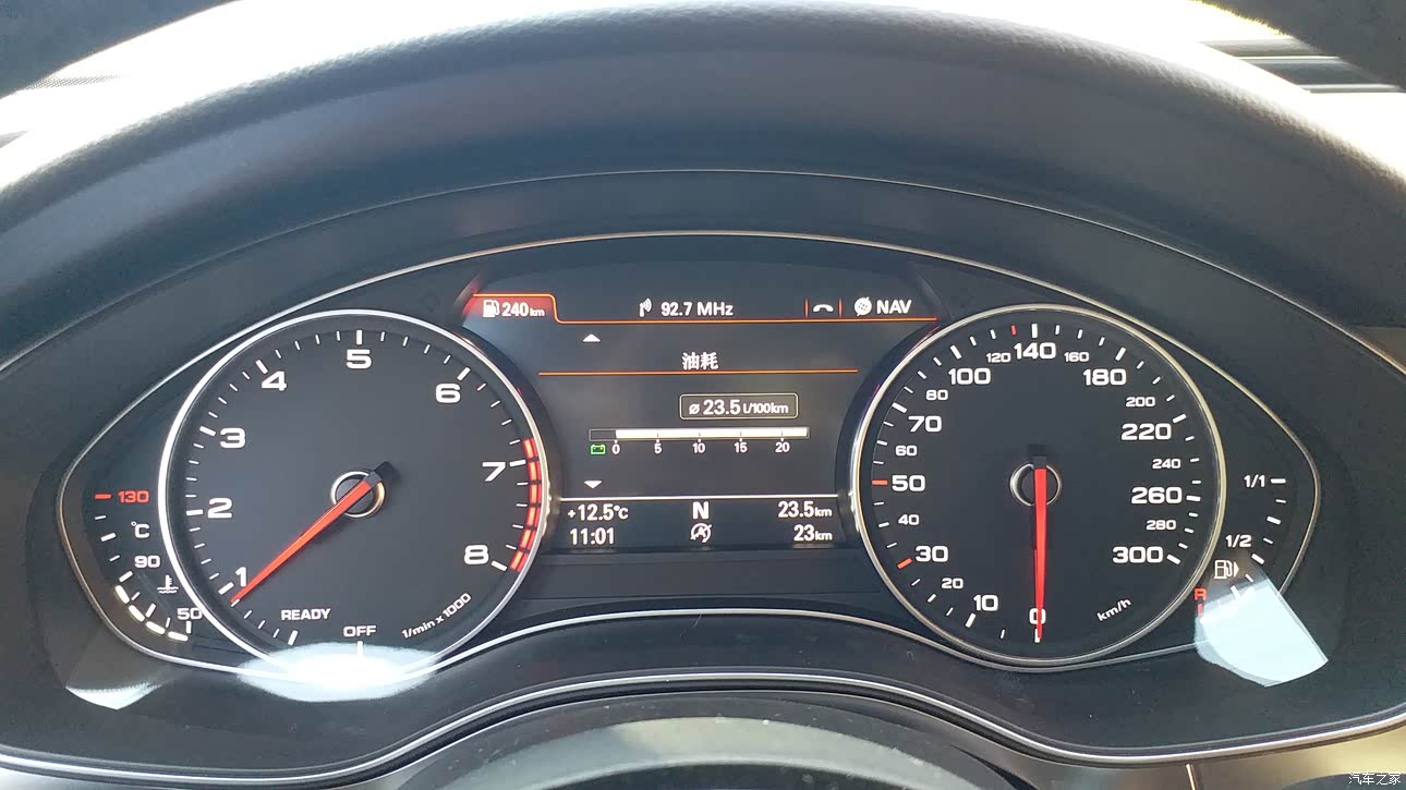虽然目前行驶了200公里,综合油耗11.5,短期油耗在9-10之间,单位到家里15公里,磨合期内的数据还是满意。媳妇5缸2T 180马力 132KW 300N现在还11.3,35TFSI能给出10个左右的数据,还是很满意的,没想到A6L油耗这么低,有点超出我的预期。高速定速巡航,120时平道1800转,上坡2000转,下坡1500转。