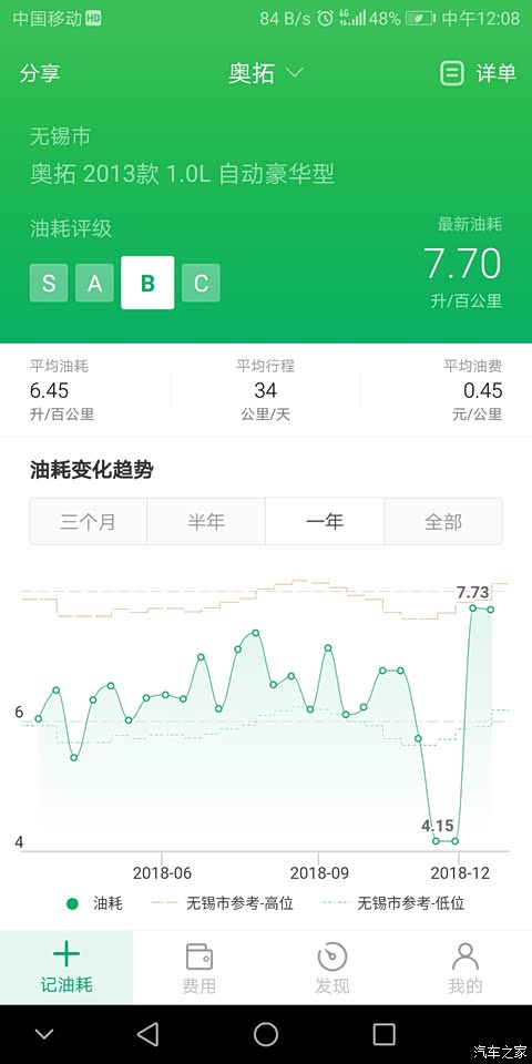 最近两次加油记录的信息不太准确,平均油耗可以参考。
