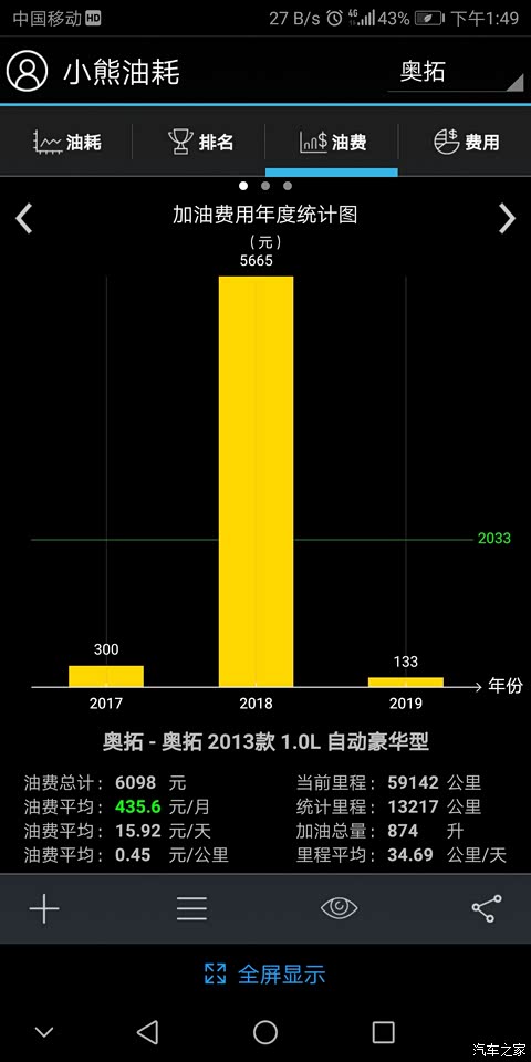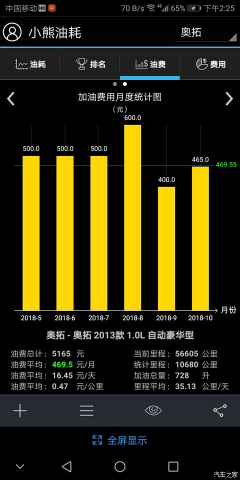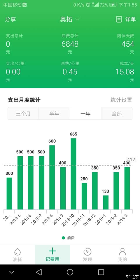 一年5600的油费,1w多公里的里程,算下来不到5毛/公里