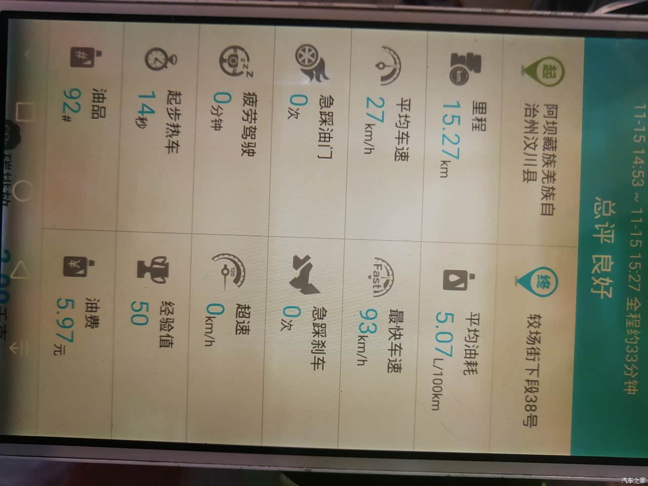 这个油耗是我跑得最低数值,车智汇测的不晓得准确度高不高,