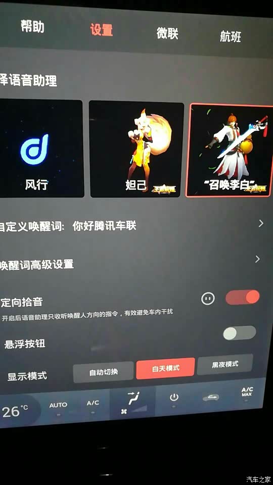 中控互联语言人物的切换,可以自己设置唤醒语,还可以设置悬浮窗,按键唤醒。