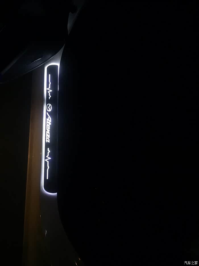买了车后在淘宝看了一个迎宾流光踏板,马上装上,超级炫酷,打开车门就是阿特兹的标志,而且一圈灯,非常帅