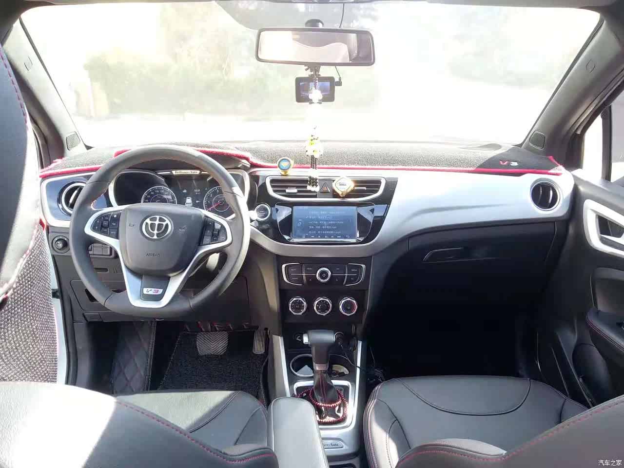 外观,侧面的悬浮式车顶很时尚而且很有运动感,双色的后视镜也加强了运动感的表现,但是V3的正面的大灯像对大眼睛,看起来还“萌萌哒”,跟侧面形成了反差。我跟媳妇儿都很喜欢V3的外观。