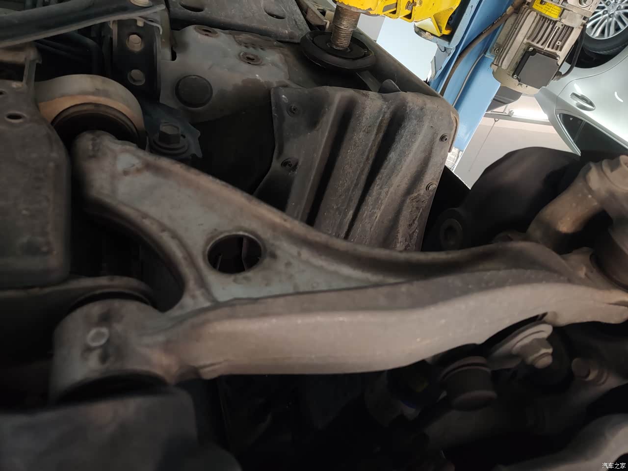保养的时候看了底盘,前悬下叉臂全铝,副车架全铝