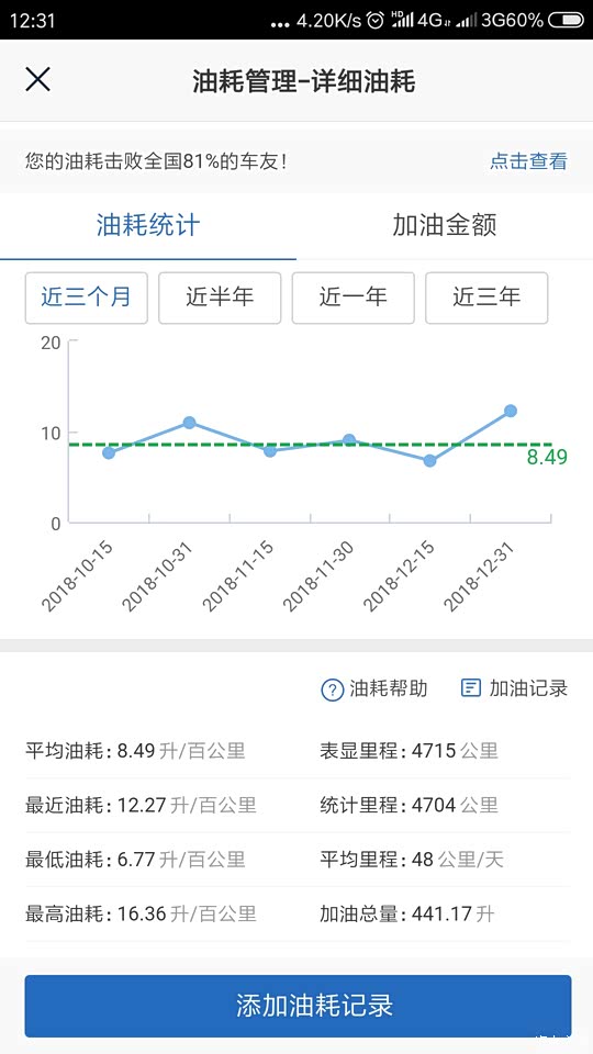 公里数高速和市区几乎对半,高速跑到110-120公里左右不省油,油耗和市区油耗差不多,冬天明显费油,比夏天不开空调百公里多一升的样子,我启动后一般都会热车,转速降到1000以下才起步缓慢开,天热的时候没有这样热车。