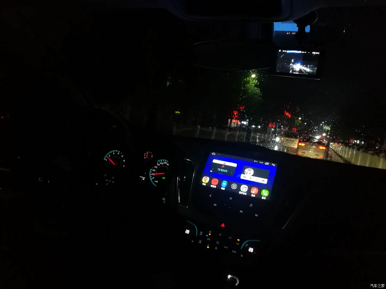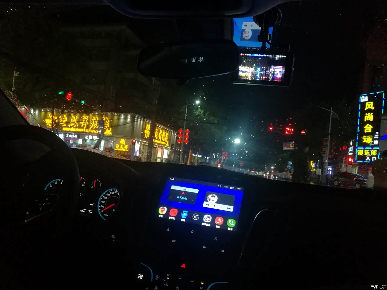 改装了中控屏,晚上效果还不错。行车记录仪买的是小款,支持夜间模式。