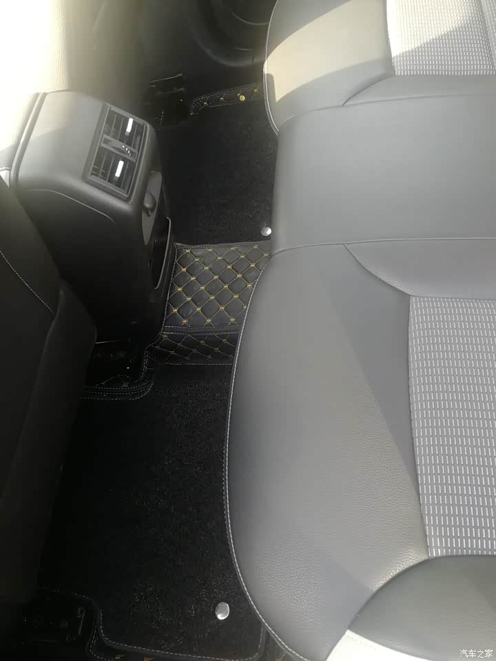 内饰个人感觉是工整,中规中矩,黑色为主调就以偏稳重那一方了,没有什么太过花俏或者什么科技感十足的地方,注重实用吧!仪表台是最基本的软质材料,门框边也是软的,门中间那一块就是硬塑的了,好像很多车那一块都是硬的,座椅是皮加布的,蛮宽厚的包裹性也可以,我不喜欢全皮座椅,因为觉得全皮夏天太烫冬天太冻。