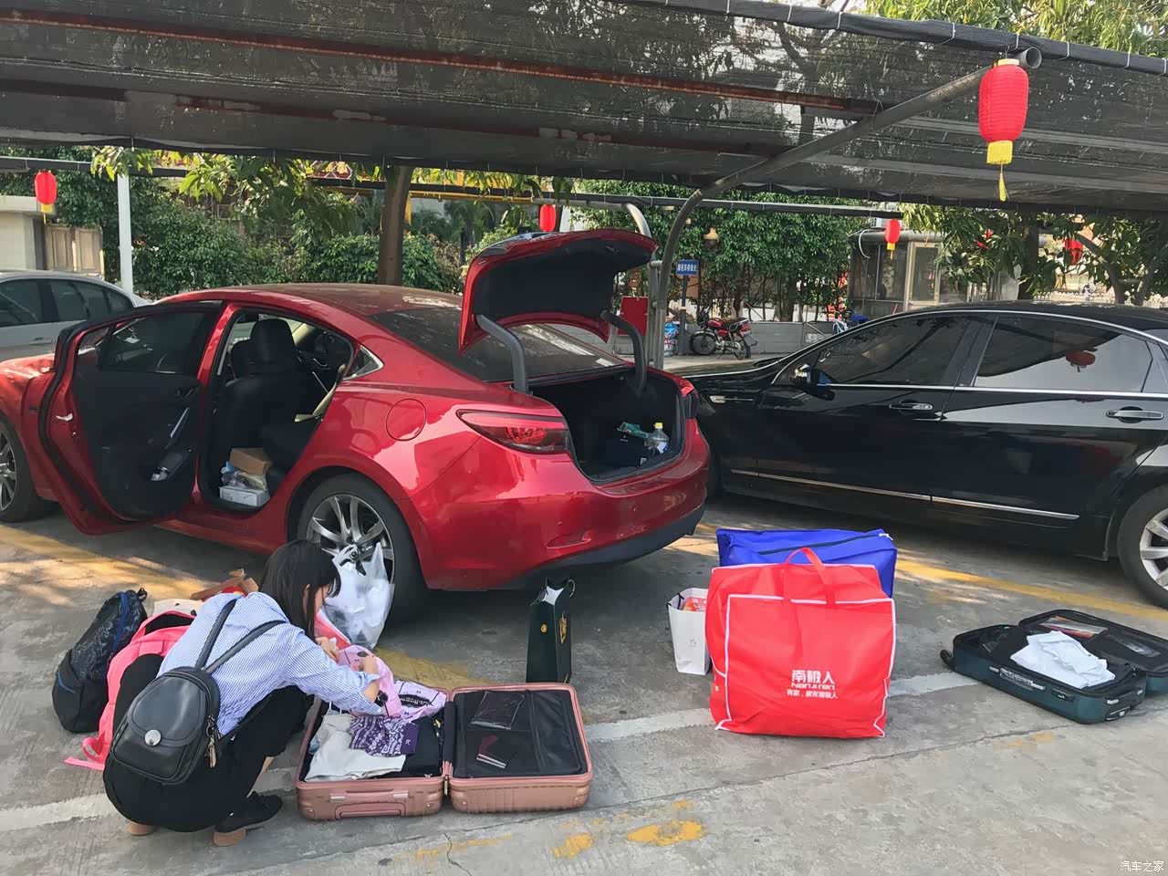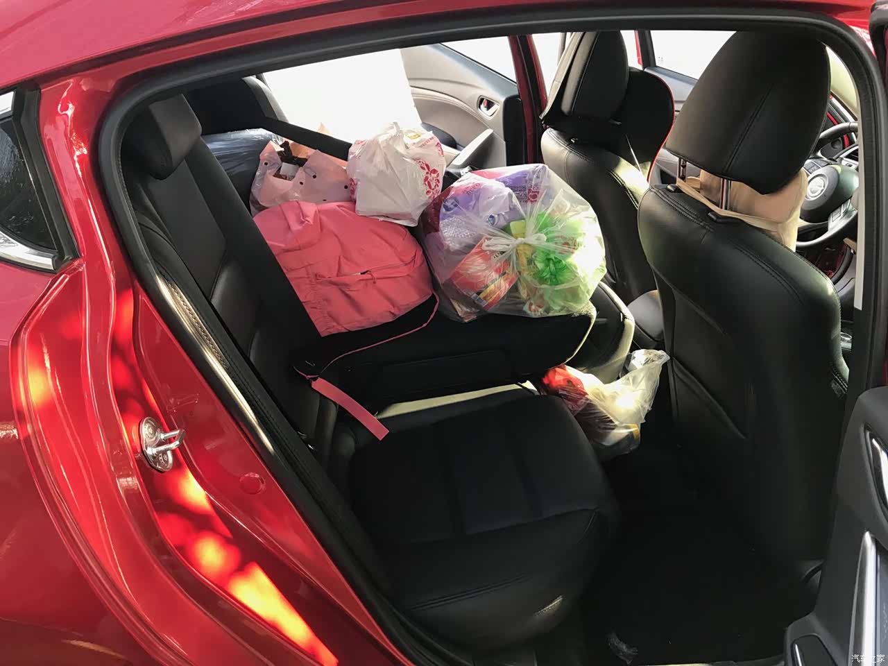 首先说说乘坐空间,这个要因人而异,我的身高是1.72,阿特兹对于我来说,坐进车里,任何角度都是没有任何局促感的,所以阿特兹的空间对我来说真的是完全够用毫无压力。不管是在前排的驾驶位还是后排的乘客位,坐着都比较宽敞和舒适,虽然比不上雅阁帕萨特的变态空间,但是,买阿特兹还在意空间,你确定不是在逗我? 今年四月进藏原本是计划车上不带人的,所以我们带了超级多的行李, 后排其实已经是堆放了很多行李,在出发当天,同行队友跟我说他车上多出一个人,需要转一个伙伴在我车上,于是就跟笨笨一起重新整理行李,一套重达20斤的帐篷,防潮垫,8斤重冬被,两个24寸行李箱,一大大袋子衣服,一箱水、一箱牛奶,一箱橘片爽,还有很多鞋子,很多零碎物件。最后挪出了一个位给我们同行伙伴,避免了他对此次进藏的遗憾。阿特兹,你真的很能装