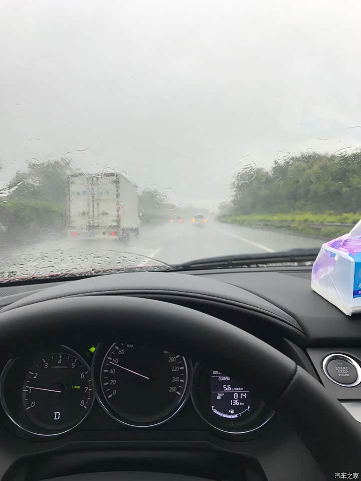 刚提车第一天,就开上了高速,正好碰上大暴雨,车速在60km/h,这个油耗表现非常惊人了