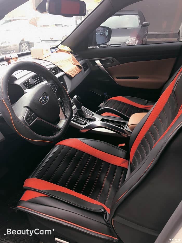 内饰方面还是挺好的,能摸到的地方都是软材质包裹的,我当初选择博越也是相中它的中控了,感觉特别漂亮,并且内饰方面是橘色搭配黑色内饰,看着给人一种高大尚的感觉,这个也是我选择运动版智慧的原因。他还搭配了夜景仪表盘,非常棒。