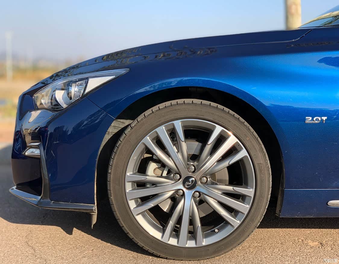 最满意应该算是驾驶感受了,操控真的很棒,双臂加横向稳定杆真不是盖的,秒杀同级一切。其次算是音响16扬声器的bose挚臻系列音效很棒,400瓦功率不是盖的,比影院的都强一个级别。再就是外观了跟内饰很漂亮,双缝线到处是真皮包裹,穿插着金属质感,而且很有层级感,英菲尼迪这车内饰用料说实在的比奔驰好多了,245/19寸的邓禄普运动防爆胎,很满意。用料棒棒哒,全铝副车架,全铝后摆臂,进排气都不错。海浪蓝也不是一般的骚气,年轻人,岁数再大点就撑不起这颜色了,所以放弃了铂金灰!