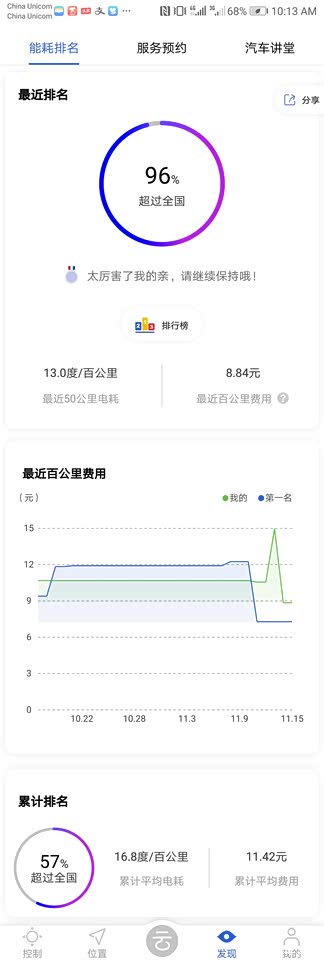 平均能耗维持在16.8KW百公里,我相信到了春天能耗会降低一些!