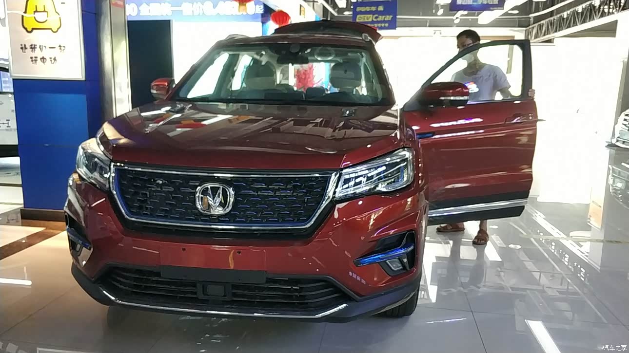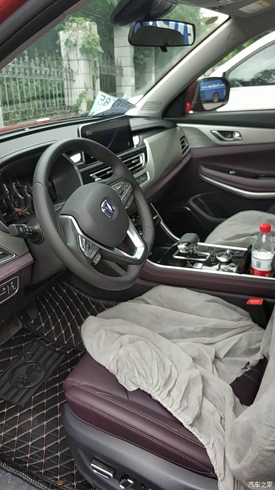 内饰感觉是长安车里做得不错的了,经常摸到的地方都是软的。配色还是不错,这种酒红色看着还是很高档。