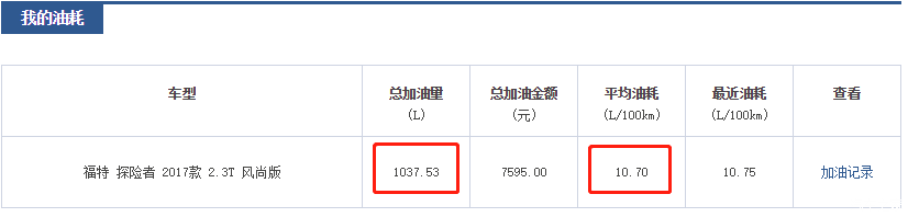 之前8000公里未系统统计过,后来用之家的油耗统计,目前大概一万多点,之家的统计的平均油耗是10.7,出乎意料的低。目前总里程18000公里,高速三分一,剩下几乎都是城郊结合,路况比较好,也是油耗低的主要原因,不过比朋友的2.0锐界要高一点,行驶路况相近。