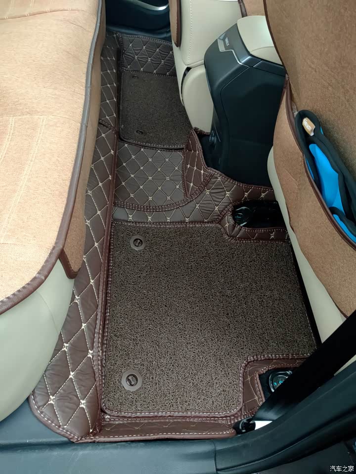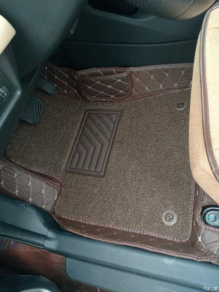 驾驶位对于我来说好像有点局促,座椅调前了方向盘下面顶着膝盖,调后了就是手觉得不自然。不知怎么调整才舒服。座椅太短,不能有效承住大腿。原车脚垫太小,覆盖面积不够,怕弄脏了不好搞卫生,就换了一套全包围的脚垫,还弄了个后备箱垫,清洁卫生就方便多了。