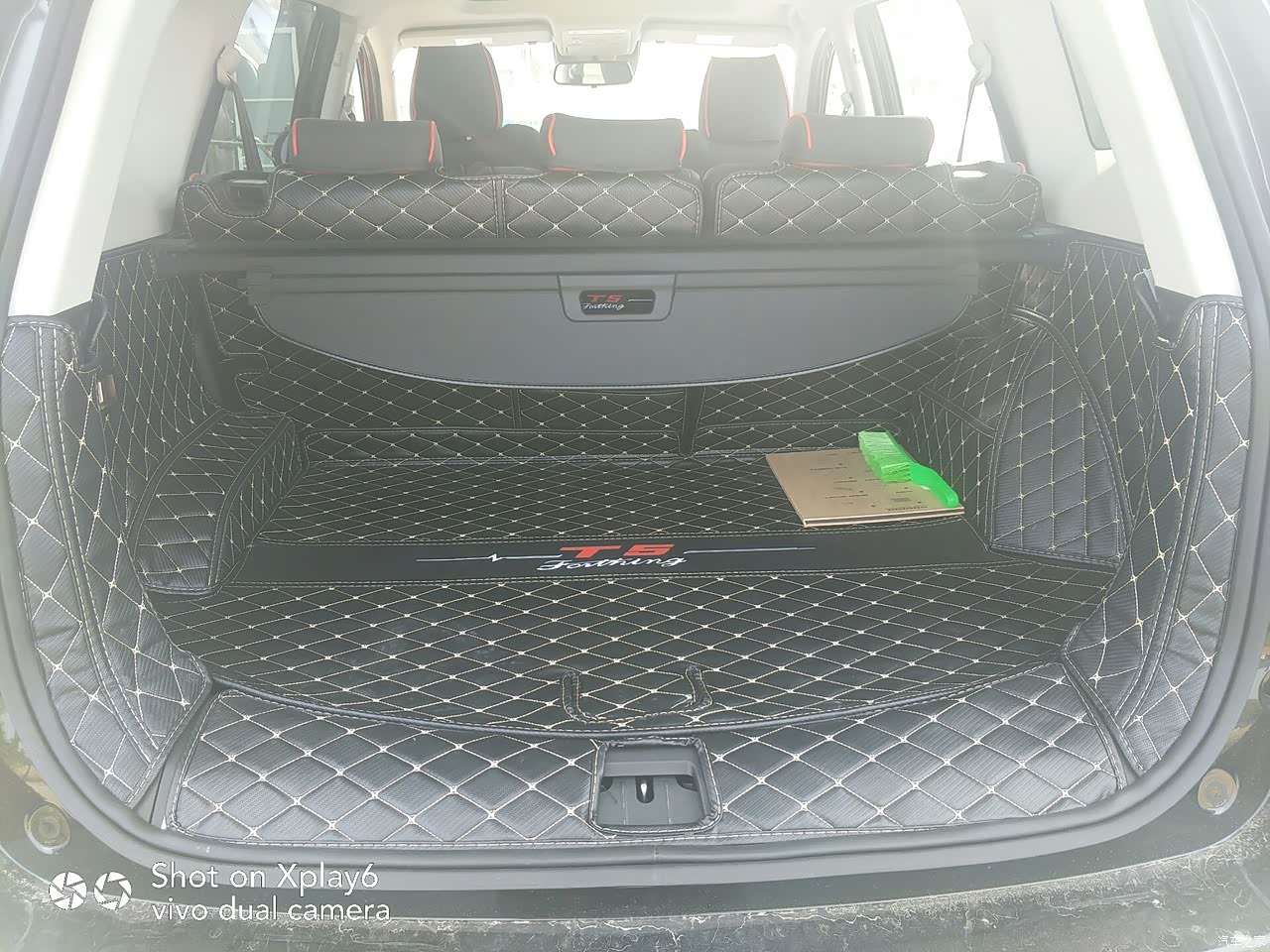 后备箱面积也挺大,某宝上买的三件套,座垫,脚垫,后备箱垫。
