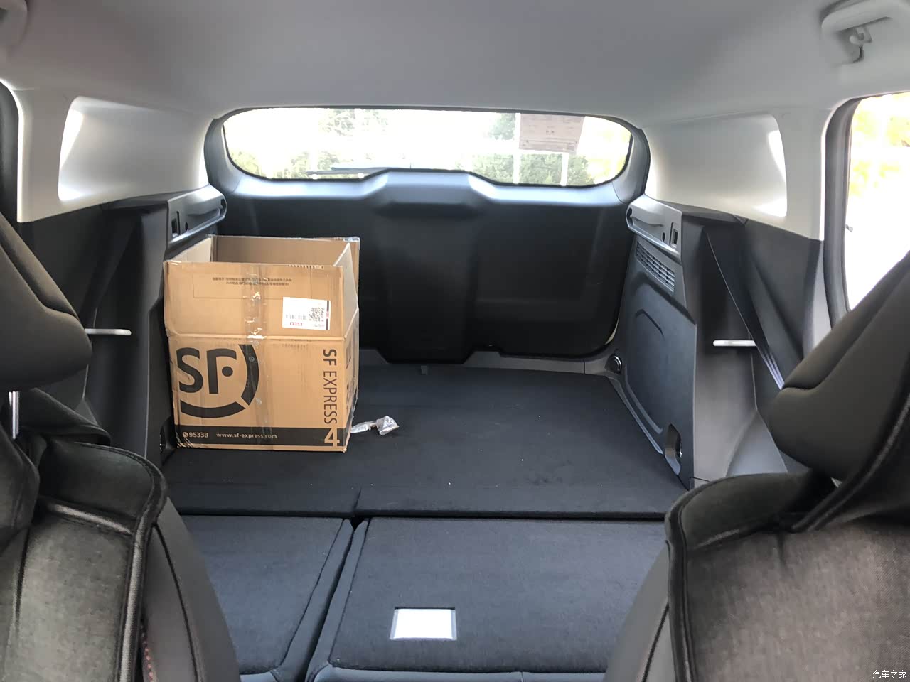 这车的内部空间可以说是非常不错了 最关键的是后排座的靠背放倒以后是平的。这一点很重要 因为一家人一起出去玩的话 放平了以后可以当一个临时床 休息一下非常的舒服 你像拉个货什么的直接一个大平面放什么都可以 比如前两天买了一个茶几的台面 直接往里面一塞就OK了 就算是把靠背立起来 第二排的腿部空间也完全足够了 用手比了一下大概一拳加4指头差不多 足够足够了