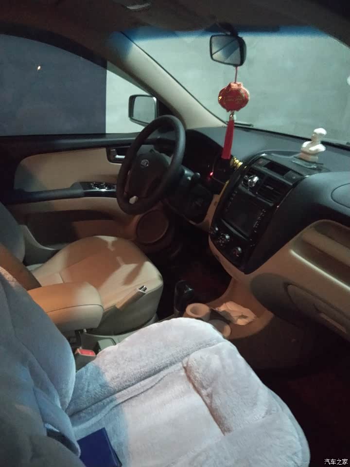 内饰比较满意,简约风格方向盘是桃木和真皮的,桃木比较滑,自带的cd机音质不错,没有以为,但是有异响,特别冬天