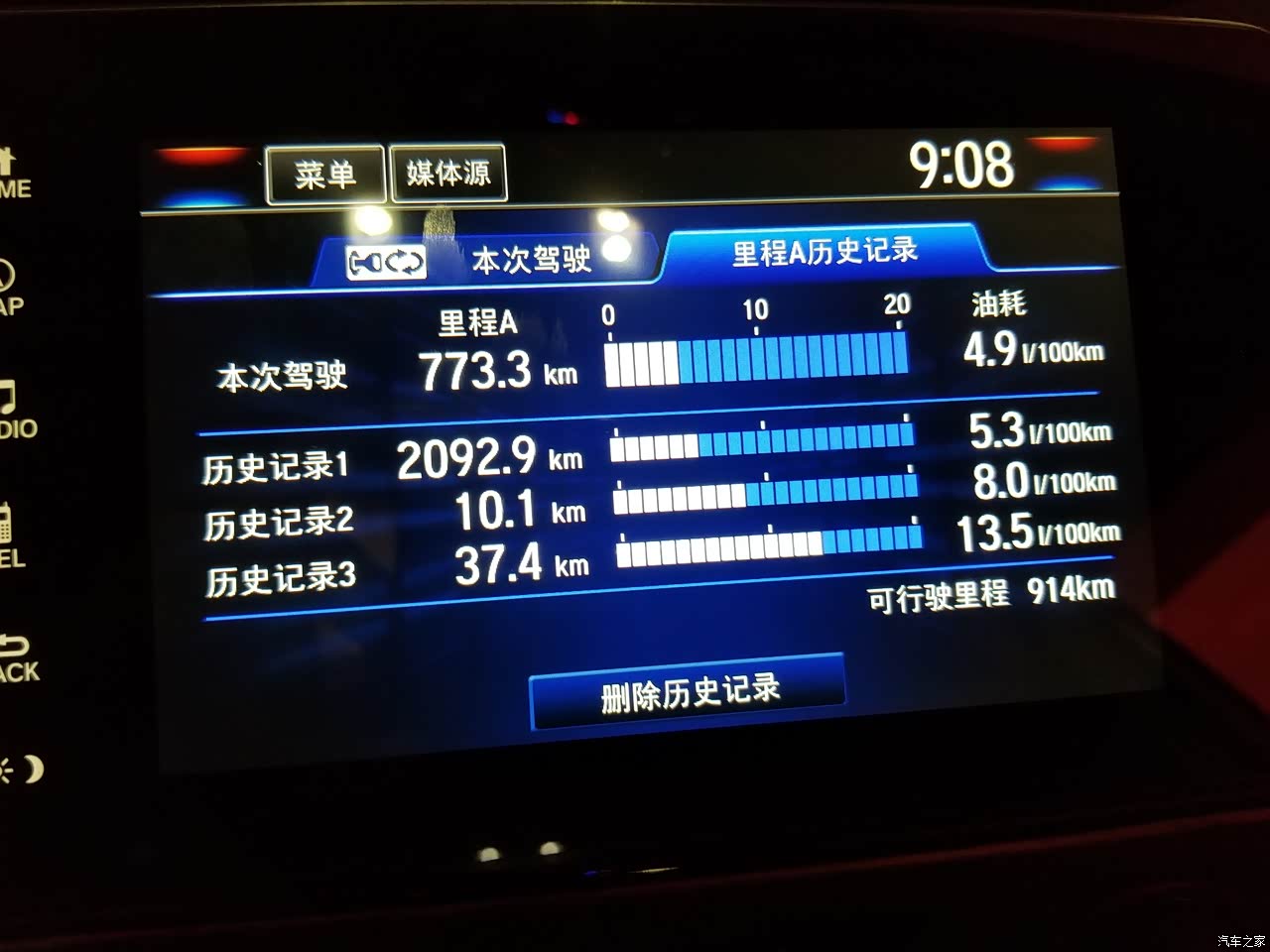 通过行动流水测试油耗测试仪进行测试得出的,表台的油耗数据其实比实际低了7%-15%左右(造成这个误差应该是路况造成的)。天热开空调会多10-20%油耗,这个和温度和车速有直接关系。夏天真的很热油耗可以在7.5-8.5,晚上5-5.7,一般热5.5-6.5,冬天不制热4.5-4.8,制热5.5-6。秋天天和春天油耗应该是最低的,多用拨片来提前减速,感觉这样用到车子报废了刹车片都是新的。以上油耗都是以ECO模式(92号汽油 )下测试出来的。