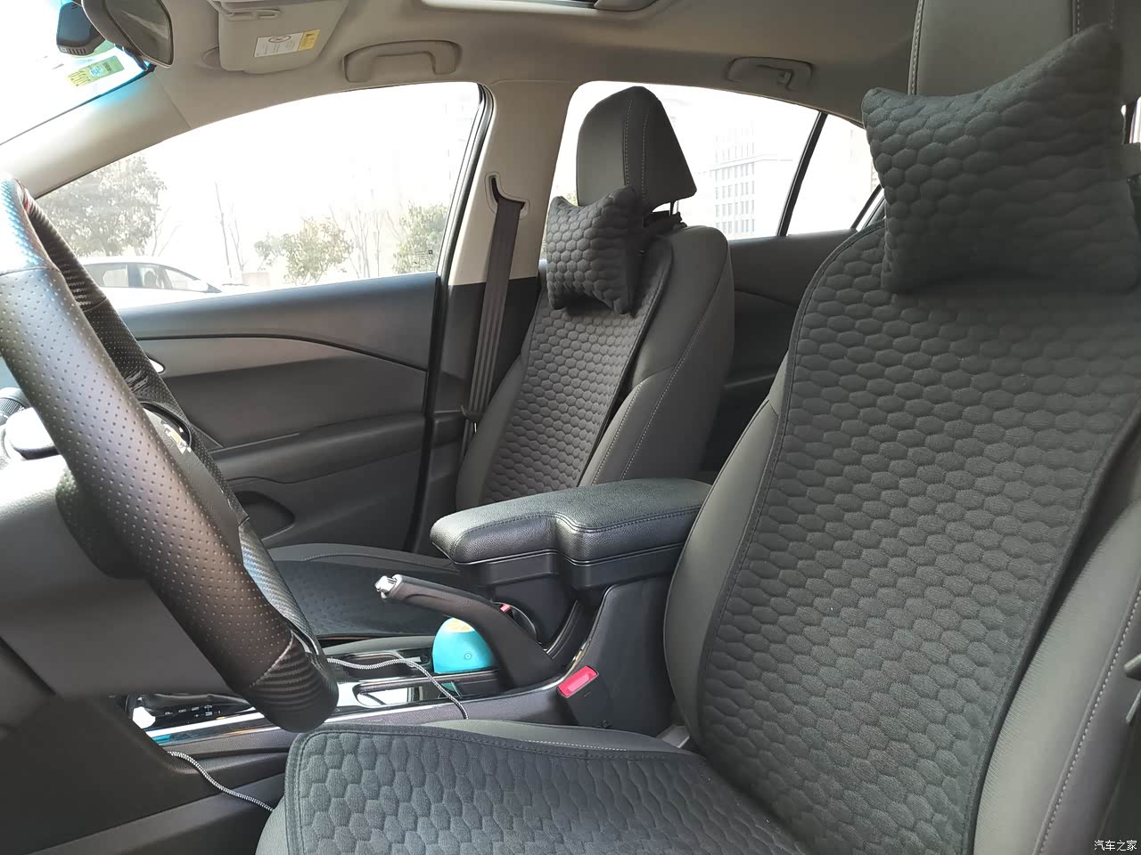 座椅很舒服,包裹性好。原车带的黑色条纹座椅套不错,没有换,后期加了一套黑色亚麻垫子,冬暖夏凉。