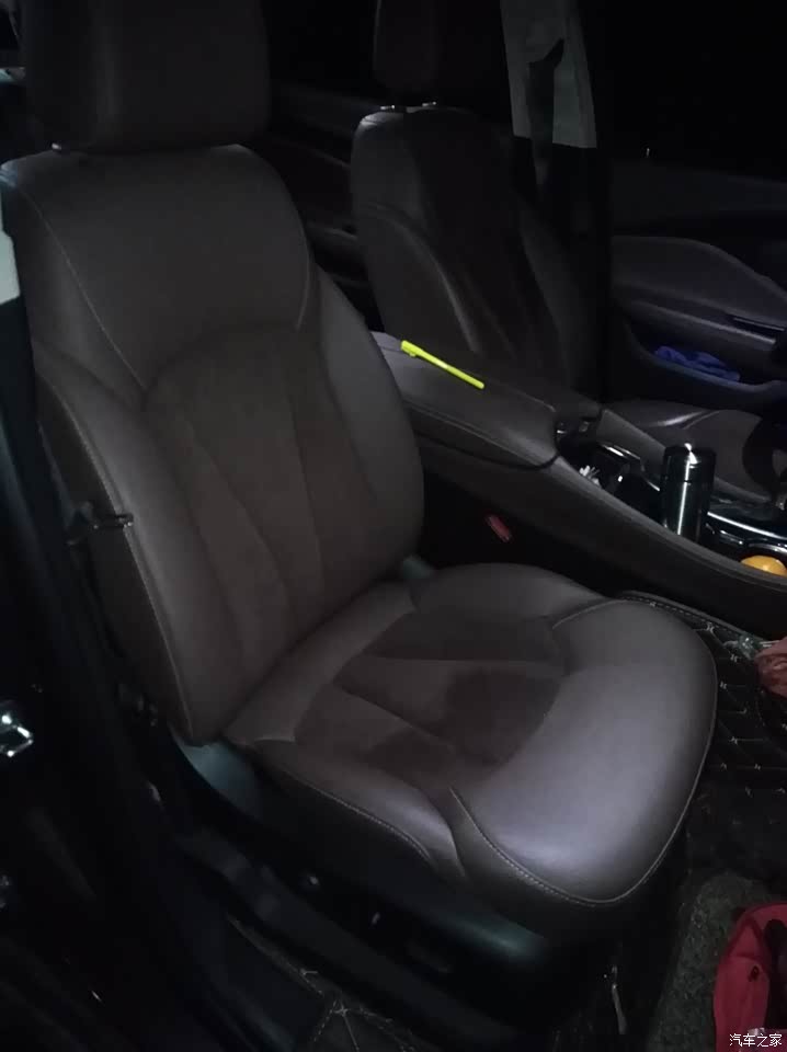 真皮座椅很厚实,坐上去很舒适,双温区自动空调也很方便,由于空间较大,坐久点也不累。