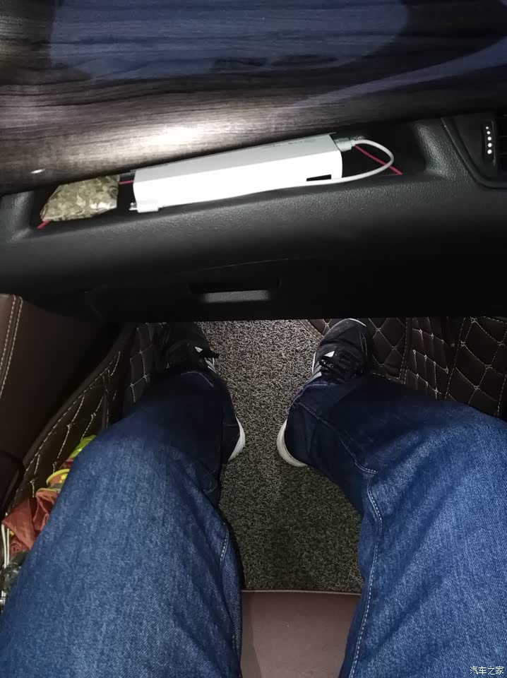 前排调到最舒适的位置,后排腿部还有两拳距离,后排纯平地板,中间的位置脚部空间也不错。