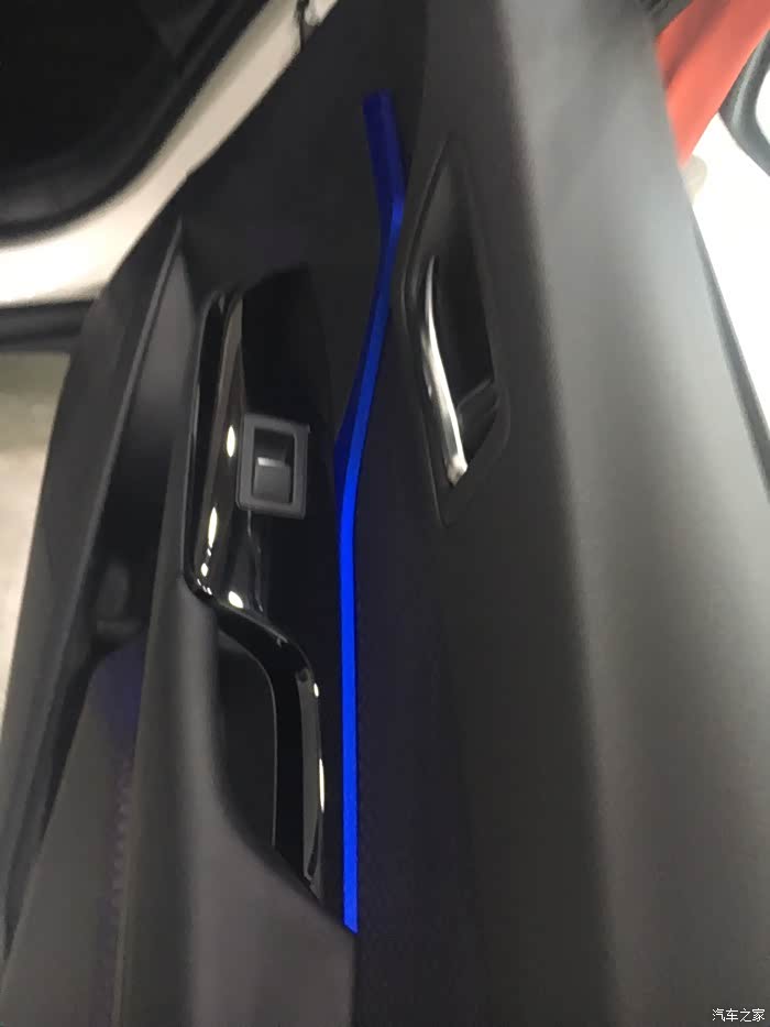 真皮坐椅的设计,对下半身的包裹和支撑是很人性化的,车内整体简洁大方很有设计感觉,蓝色内饰略显调皮了点,钢琴烤漆的处理,触感细腻。