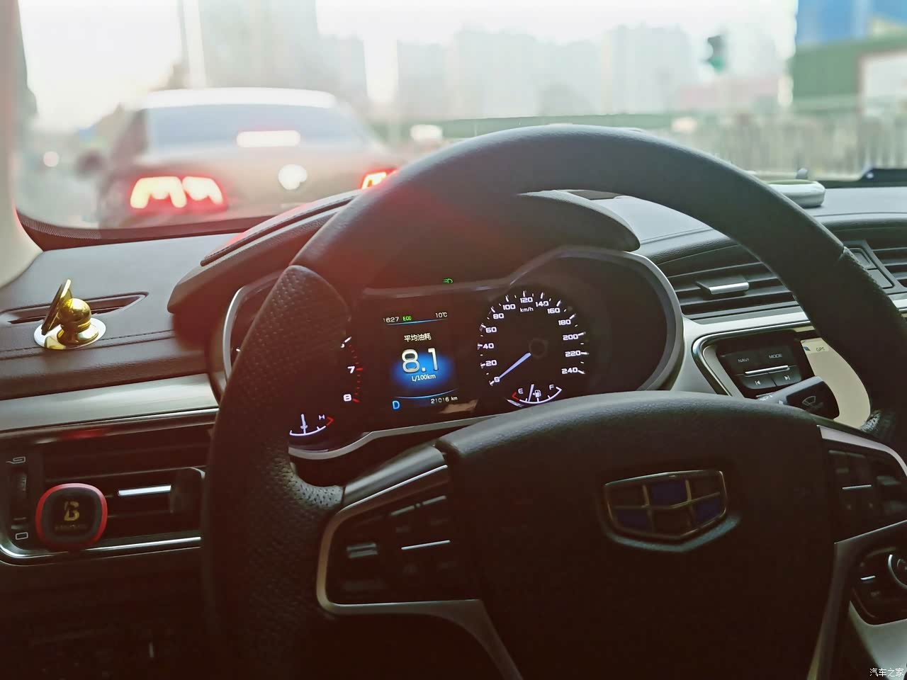 城市道路目前用车两年了油耗控制的很不错了在百公里7.5升左右,开空调以后也没有多大的油耗提升,综合来说还是不错的,在高速公路上开着空调油耗还是很不错的表现,在百公里6.5升以内表现完美吧,哈哈值得点赞,总的来说吉利两年用车感受很好,性价比也可以吧,毕竟那么大的车!