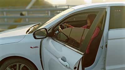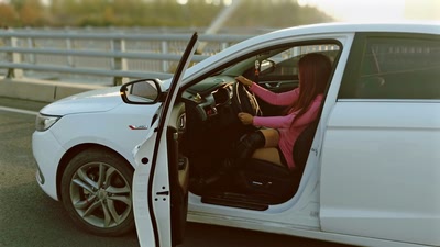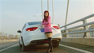 美女欣赏爱车中,从后侧面看来真的很漂亮的。后翘的屁股,贯穿式的笔挺腰线,显得十分协调!