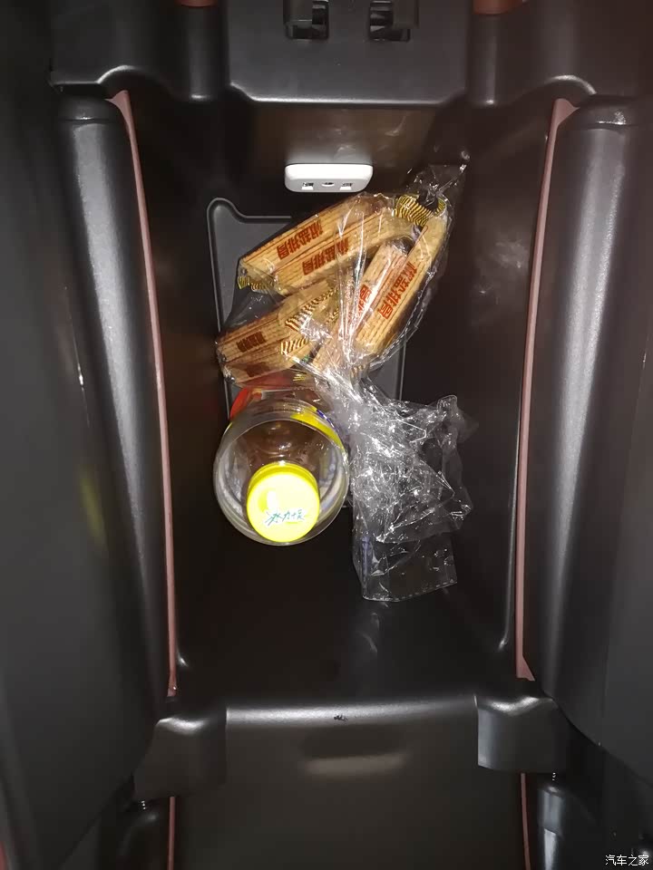 中间扶手箱里还可以放点东西,放点水和孩子的零食,这个倒是很实用,要不就很乱了