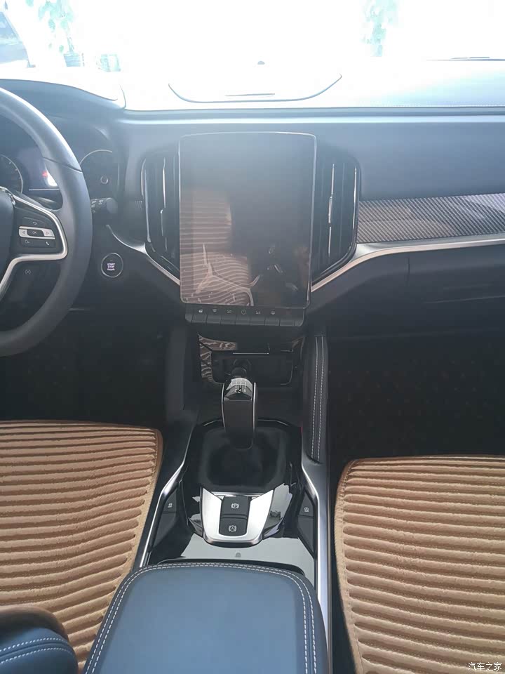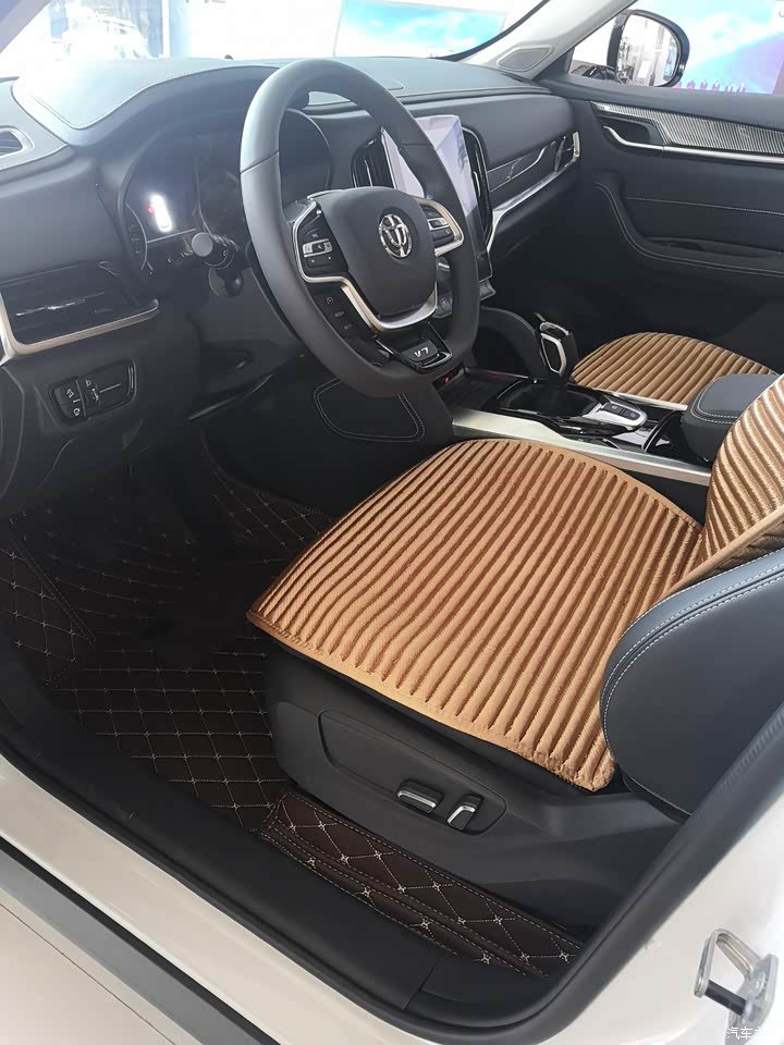 内饰还是比较豪华的,黑色的皮质座椅,搭配了10.4寸的中控大屏,很有科技感,黑色的座椅和米白色的车顶搭配,特别的好看,电子手刹的运用,不占空间,使用起来也特别方便,轻松就拉了手刹了。