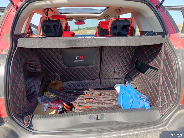 后备箱很宽阔,随我放,目前已经安装了后备箱垫,有点乱,等我买个箱子收纳下