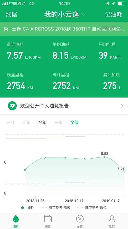 有开高速,市区,还有开去练车,目前小熊油耗显示平均油耗是8.15