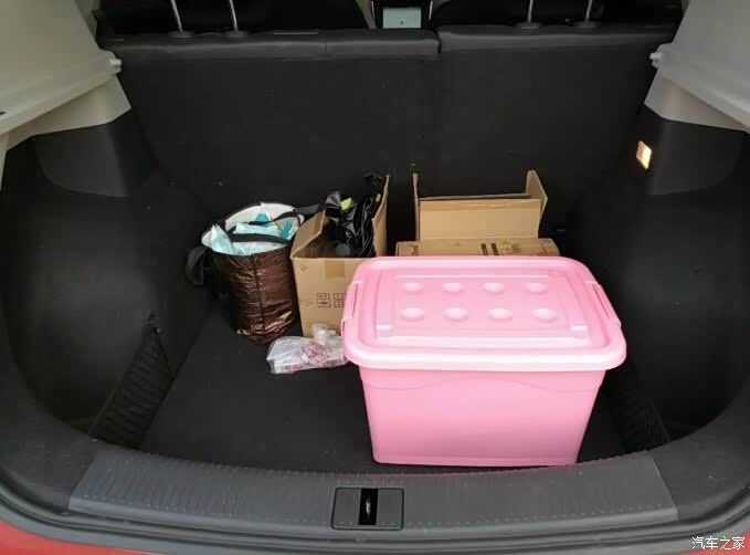 后备箱能放一个中型收纳箱的同时还可以放下儿子的折叠手推车和有一大堆玩具零食