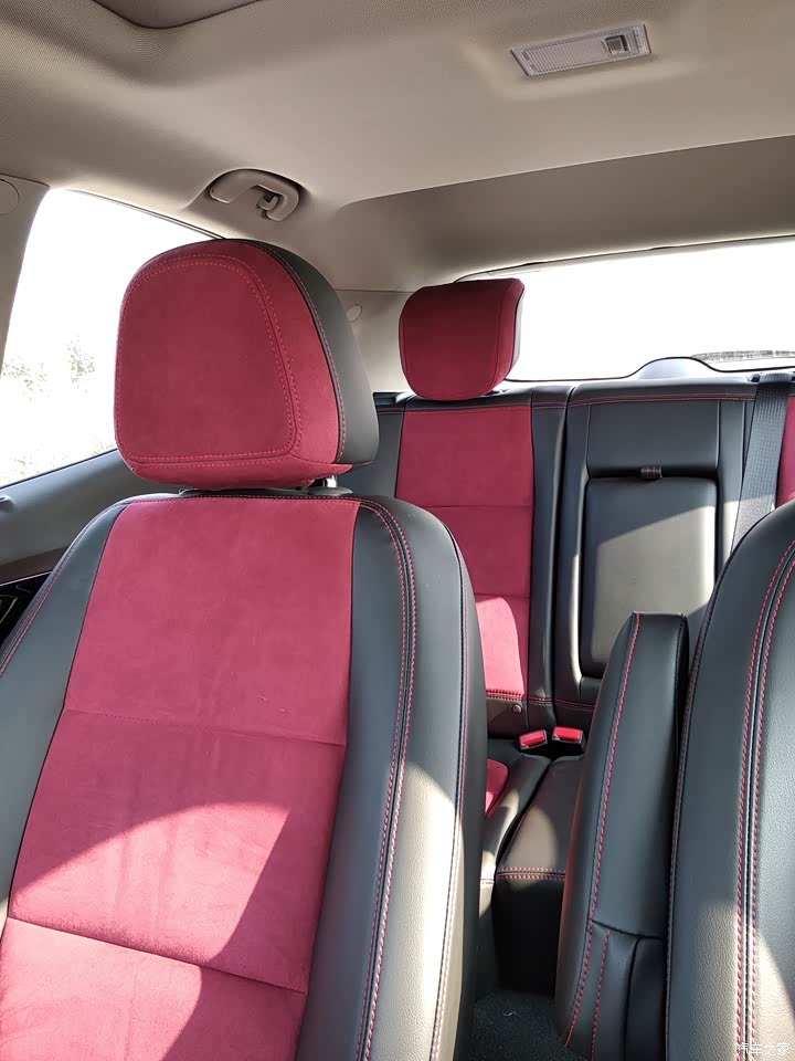 中控附近的材料是类似于钢琴烤漆的工艺,加上一个大大的彩色显示屏非常有档次感,而且整体的布局是微微倾向驾驶员方向的,所以在使用的时候所有的功能按键都在触手可及的范围之内,非常的方便,但是就是需要经常打扫不让容易沾灰跟留下手印!!!座椅的双色设计确实让这个小车的内饰豪华感提升了不止一个档次,并且用的红黑两色很有运动范,容易激发出我的运动基因来,所以要控制好自己右脚才对。